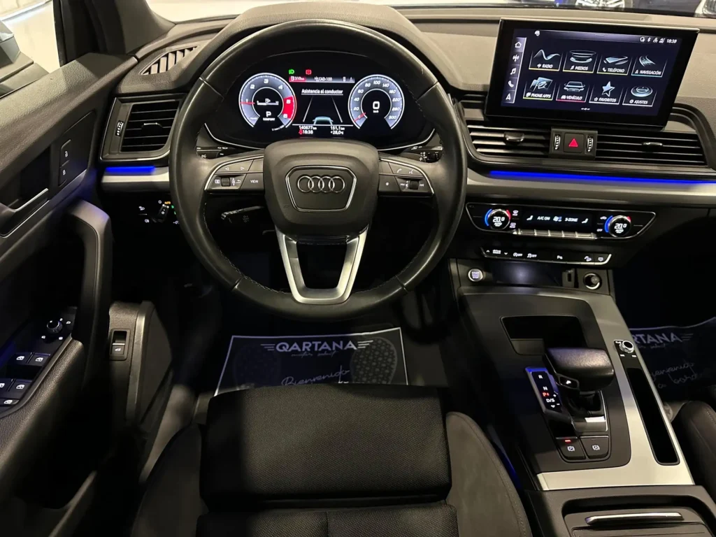 ** QARTANA MOTOR ** AUDI Q5 40TDi 2.0TDI 204CV QUATTRO-ULTRA SLINE . Financiación a su medida sin entrada – Nacional – Históricos de mantenimientos – Certificado de kilometraje por escrito – Extras: Sline Exterior – Ángulo muerto – Digital Cockpit – Pilotos traseros y delanteros matrix led con función intermitente dinámico -Iluminación ambiental en colores – Portón eléctrico – Parktronic traseros y delanteros con cámara trasera – Climatizador Trizona- App Connect – Cargador Inalambrico – Navegación – Espejos abatibles eléctricos – ….. 1 AÑO DE GARANTÍA OFICIAL CON POSIBILIDAD DE 2- IVA INCL. -Kit Distribución – Aceite y filtros – Mantenimiento Cambio -Totalmente Revisado 100%- Transferencia titularidad – TODO INCLUIDO EN EL PRECIO
