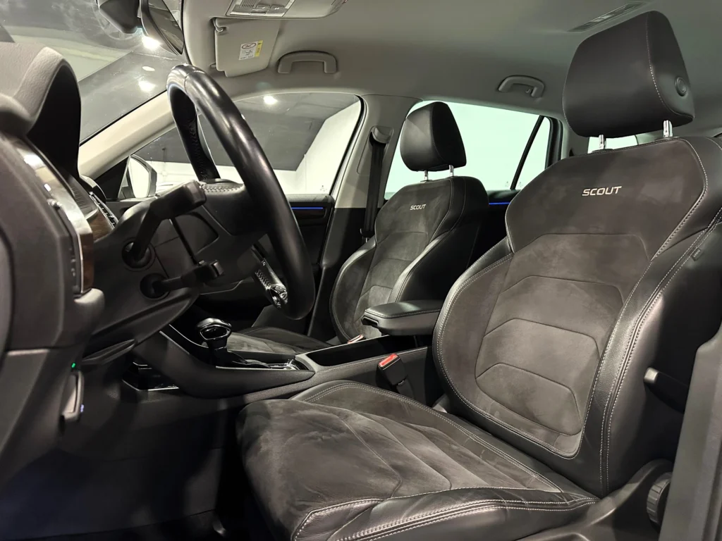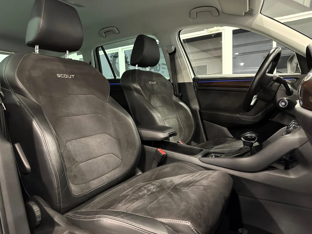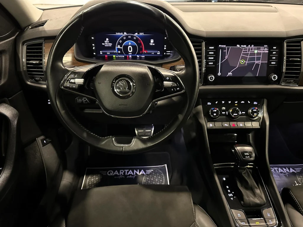 ** QARTANA MOTOR ** SKODA KODIAQ SCOUT 2.0 TDI 190CV 4×4 DSG7. Financiación a su medida sin entrada – Nacional – Único dueño – Históricos de mantenimientos- Certificado de kilometraje por escrito – Extras: 7 Plazas – Faros Full Leds – Digital Copkit – Llave Keyless – Iluminación Interior en colores – Portón eléctrico – Gancho de remolque- Asientos calefactables – Smart Link- Climatizador Bizona – Sensores delanteros y traseros con cámara …. 1 AÑO DE GARANTÍA OFICIAL CON POSIBILIDAD DE 2 AÑOS – Kit distribución con bomba de agua -Aceite y filtros – Mantenimiento del DSG – Totalmente Revisado 100%- Transferencia titularidad